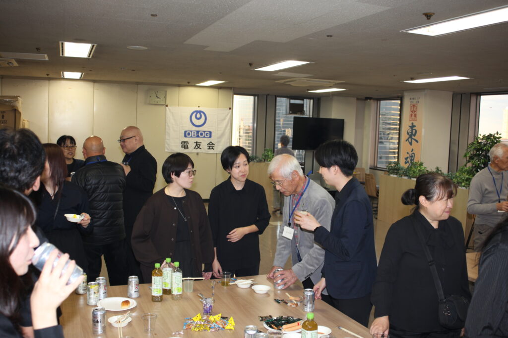そして、同会場のテーブル設営を皆さんにお手伝いいただき、ビール等とケータリングの軽食を準備して、吹奏楽団員の皆さんも交えての懇親会へ移ります。まさしく「老若男女」が入り交じり、吹奏楽団の年間活動のエピソードをお聞きしたり、演奏された曲の当時の思い出を披露しあったりと、大いに盛り上がり、あっという間の3時間でした。
