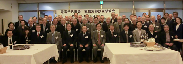 初代高城事務局長を中心に電電千代田会本部役員の皆さんにもご協力いただき、2017年11月22日に直轄支部設立懇親会をキックオフとして開催することができました。初代幹事の皆さんには無理も言いながら幹事就任を要請する一方で、支部発足にあたってはその幹事の皆さんをはじめ多くの方にご尽力いただいたことに大変感謝しています。